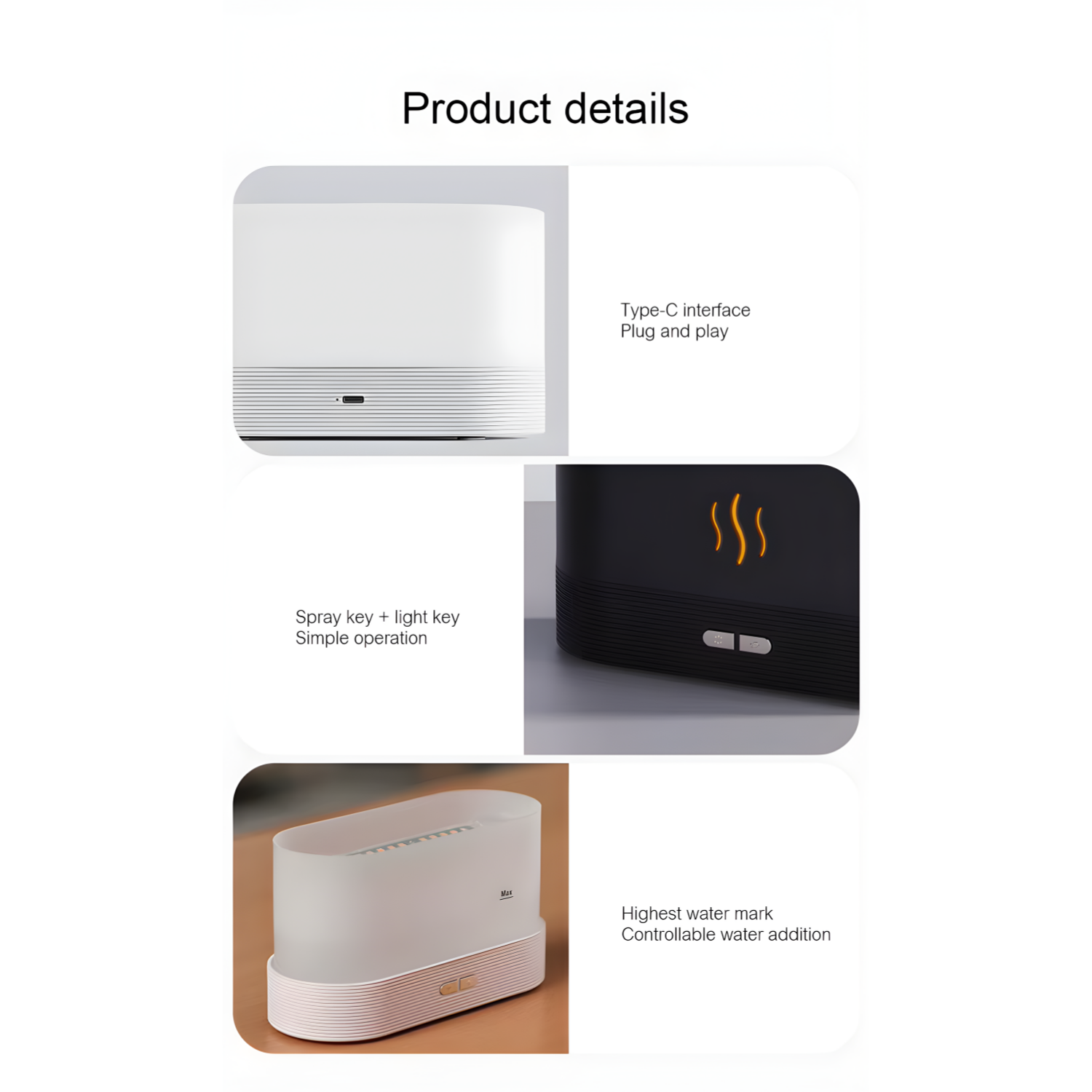 - Basic: Essential diffuser and humidifier functions.